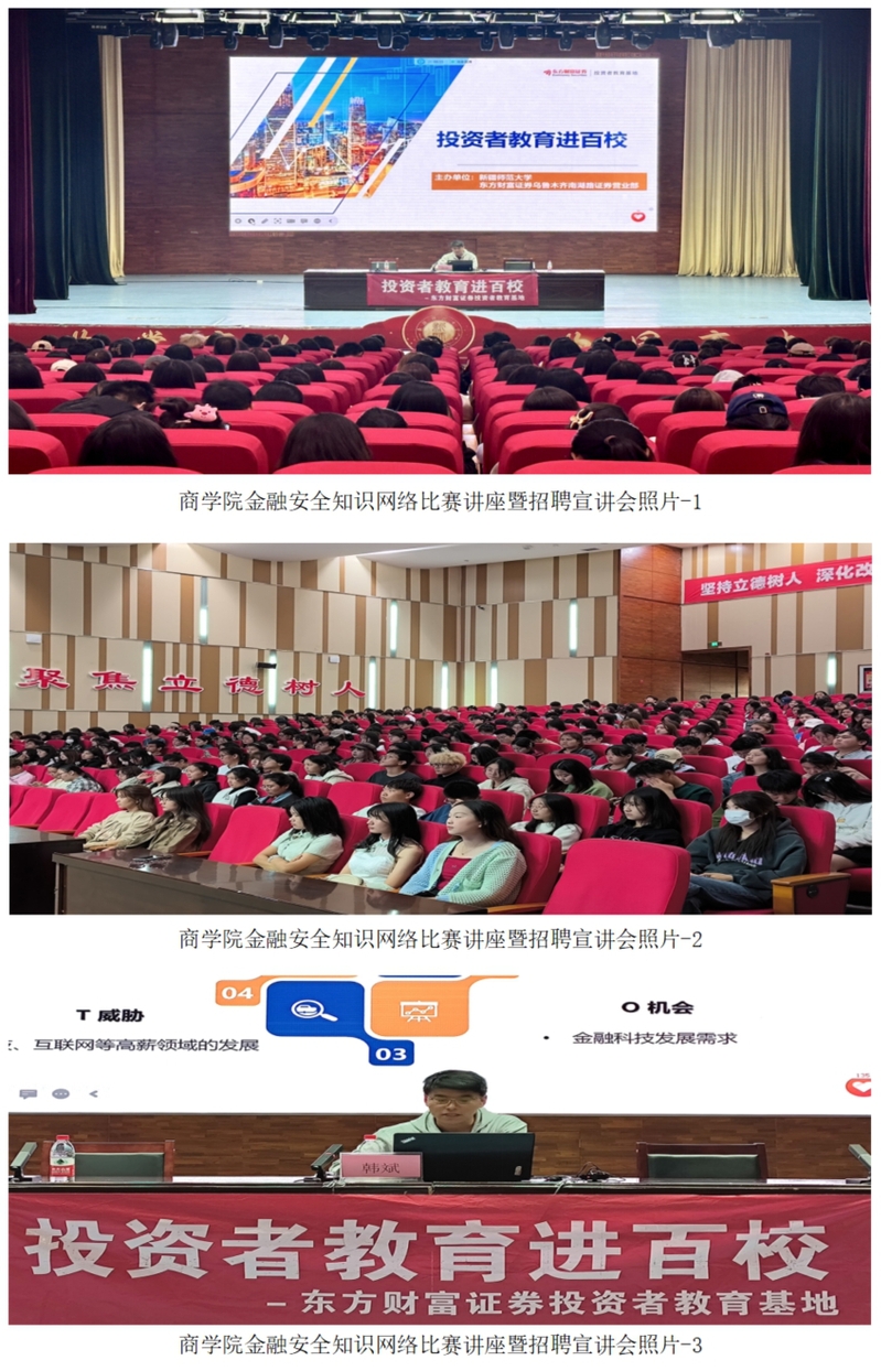 此次会议由东方财富证券营业部韩斌讲师为学生进行讲解,首先介绍了金融行业目前的发展,金融行业毕业生就业情况以及金融行业的分类,其次向永利集团3044学生介绍了金融子行业及其就业前景,紧接着为永利集团3044学生提供了一些有关金融行业的职业生涯规划,为永利集团3044学子今后的发展提供了方向。最后介绍了金融安全知识网络比赛活动有关内容,此比赛分为校内比拼和全国比拼两个阶段,学生使用专用平台,以答题的形式参与。题库包含金融反诈知识、金融基础知识、金融安全教育、消费者权益保护等方面内容。