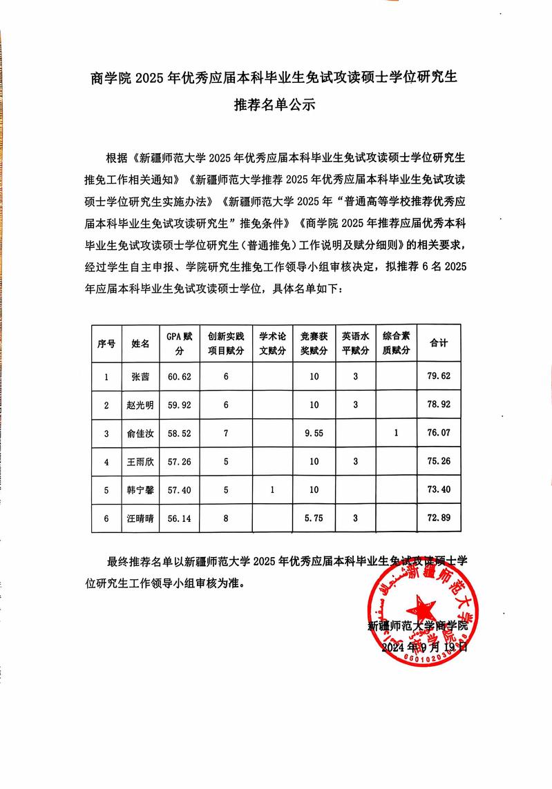 永利集团30442025年优秀应届本科毕业生免试攻读硕士学位研究生推荐名单公示