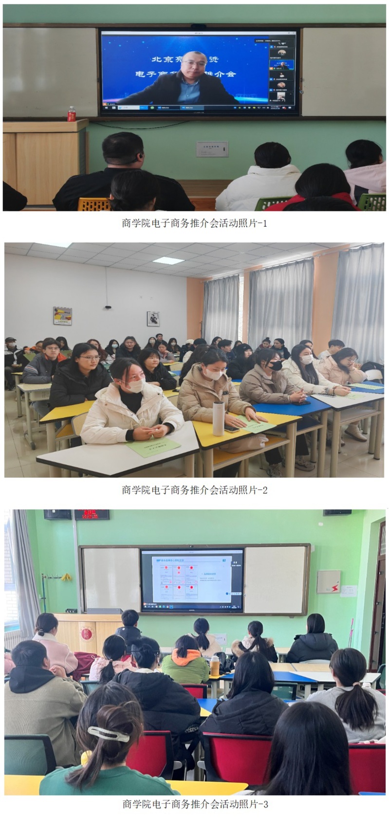会上,赵鸿忠书记代表学院对杨永明先生表示热烈欢迎,对亮马投资公司支持学院人才培养和就业工作表示衷心感谢。随后,杨永明先生就电子商务行业的发展历程、现状、未来趋势进行讲解,向学生普及电子商务行业的发展现状和未来趋势,提高同学们对行业的认知度。紧接着他介绍了北京亮马投资集团在电子商务领域的业务布局和投资方向,为有志于从事电子商务行业的同学提供就业和创业指导。最后,杨永明先生对北京亮马投资集团在电子商务领域的投资项目、成功案例进行展示和分享,讲述了企业与影视,直播,电商产业链之间的关系。互动提问环节中,同学们就自己所关心的专业对口、发展平台、入职培训等问题与杨先生进行互动交流,面对学生提出的问题,杨永明先生作了耐心细致地解答,学生在拓宽行业认知的同时,也加深了对工作岗位的了解。