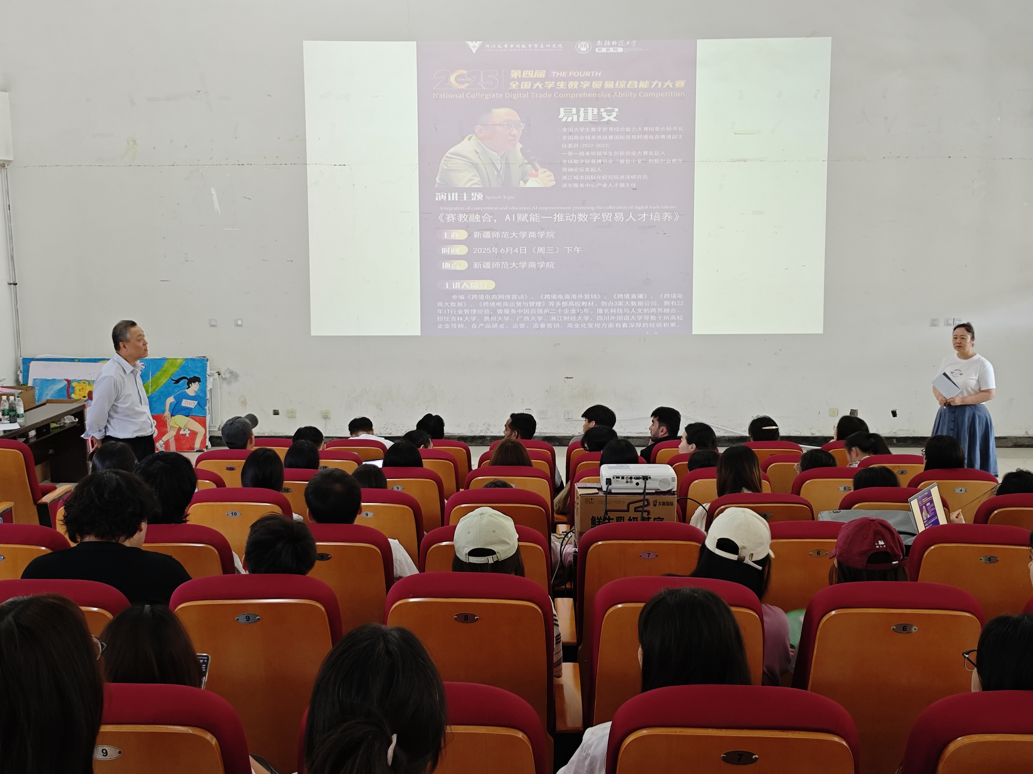 2025年6月4日下午,永利集团3044在文科一号楼302室成功举办了题为“赛教融合,AI赋能——推动数字贸易人才培养”的专题讲座。本次活动由蔡玉洁副院长担任主持,特别邀请全国大学生数字贸易综合能力大赛组委会秘书长易建安老师担任主讲人,吸引了永利集团3044师生共计90余人参加。