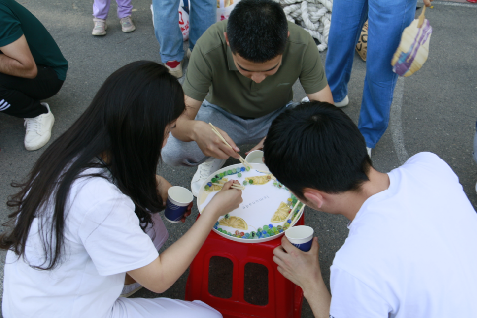 活动过程精彩纷呈,首先开始的是“夹玻璃弹珠”比赛,随着倒计时开始,同学们拿起筷子迅速夹起玻璃弹珠,往纸杯里放,各显“筷”功。